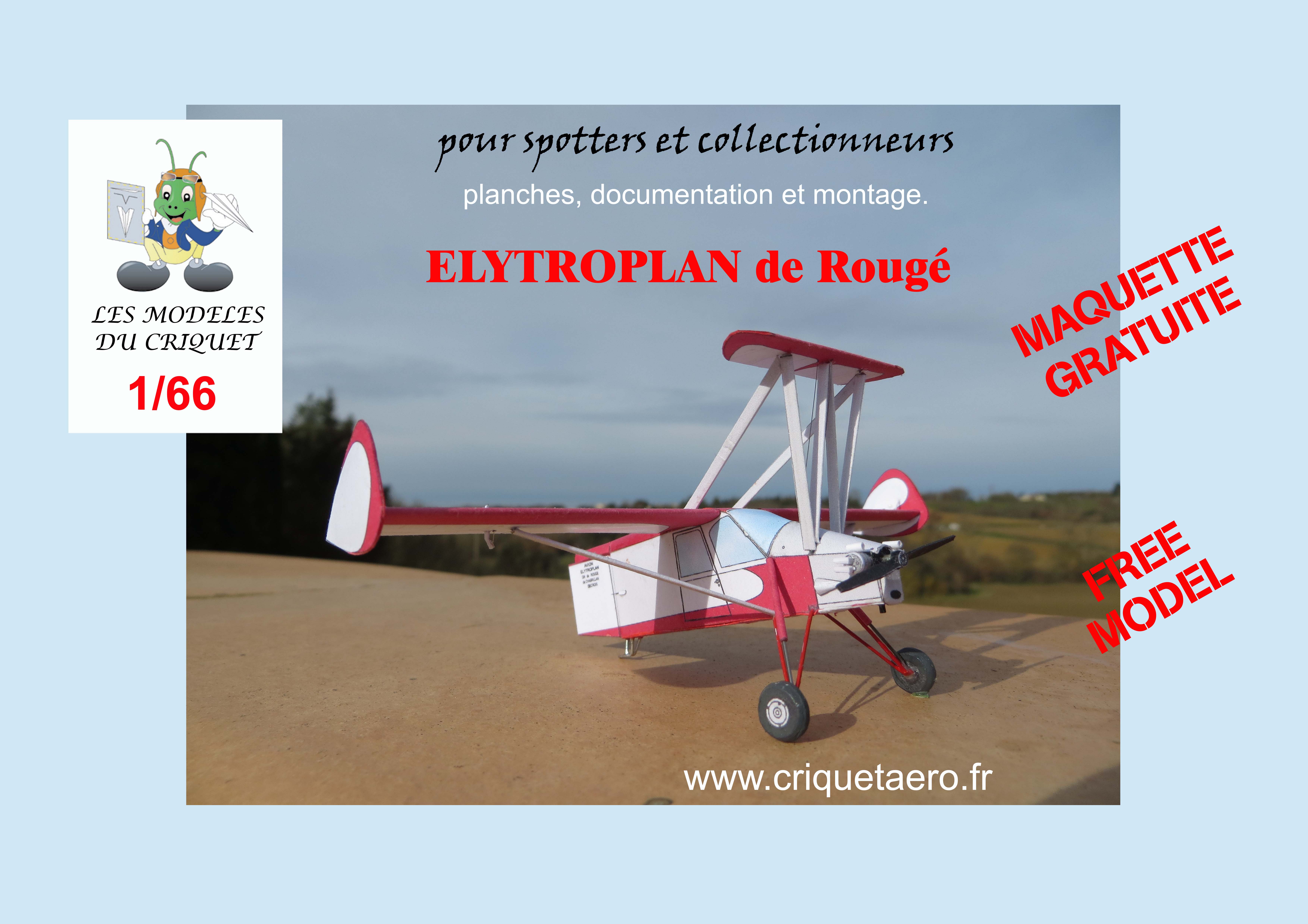 In 1937, Charles de Rougé realized this other version of "Elytroplan", with horizontal stabiliser, The plane above the wing had to ensure, by its trail, the stability of the aircraft whose centering was very advanced. This prototype was hidden in 1943, during the last war, at the Neuville sur Oise castle. Count Bertrand de la Poëze Harambure donated it in 1989 to the French Air and space museum of Le Bourget where it was restored by the Association "Les Ailes anciennes".